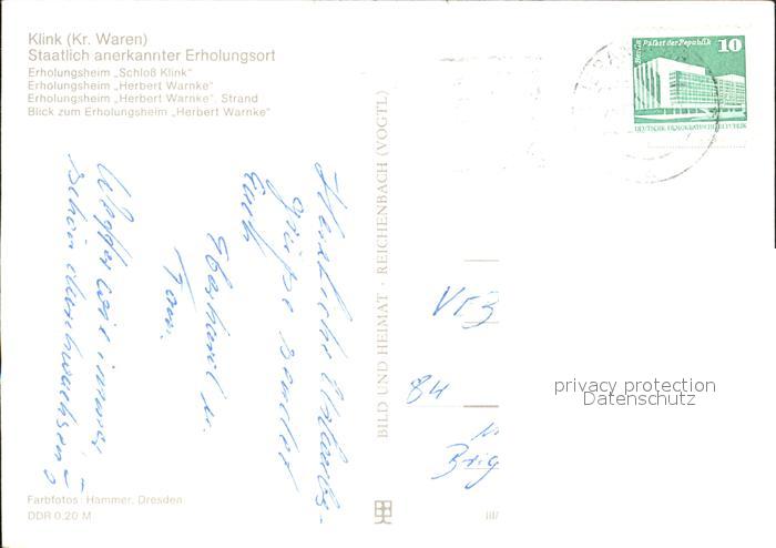 72590740 alte Postkarte Klink Waren Erholungsheime Schloss Klink und Herbert Warnke Strand Park postalisch gelaufen Erhaltung siehe scans [WerneD78] KatCode: 11110013056030