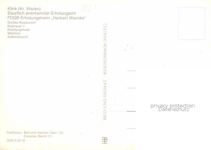 72849580 Klink Waren FDGB Erholungsheim Herbert Warnke postalisch nicht gelaufen Erhaltung siehe scans [KathaD81] KatCode: 11110013056030