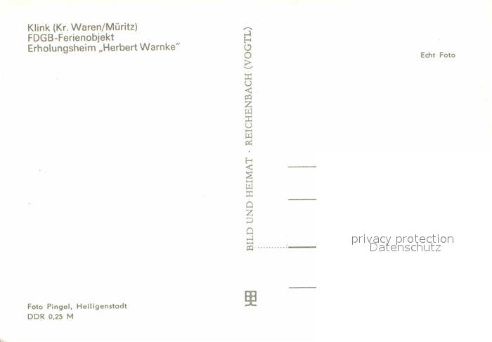 72773275 Klink Waren FDGB Erholungsheim Herbert Warnke postalisch nicht gelaufen Erhaltung siehe scans [FriedD77] KatCode: 11110013056030