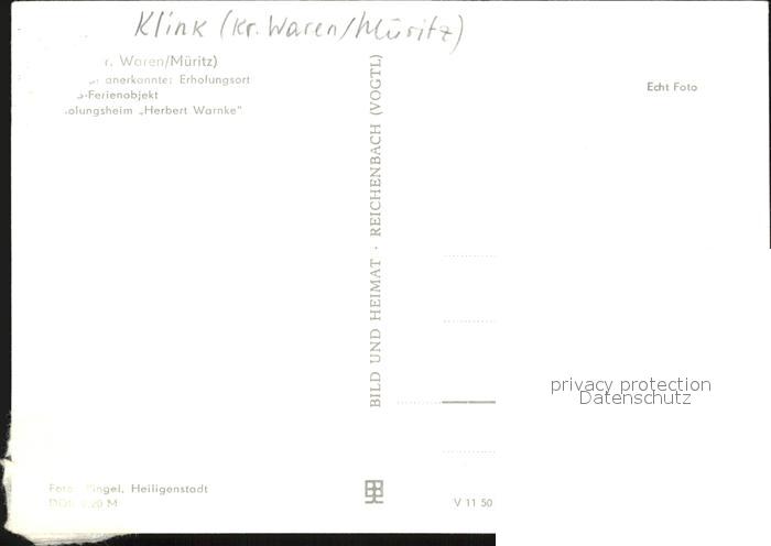 Klink Waren FDGB Erholungsheim Herbert Warnke postalisch nicht gelaufen Erhaltung siehe scans