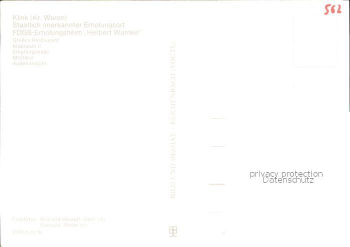 72025167 Klink Waren FDGB Erholungsheim Herbert Warnke postalisch nicht gelaufen Erhaltung siehe scans KatCode: 11110013056030