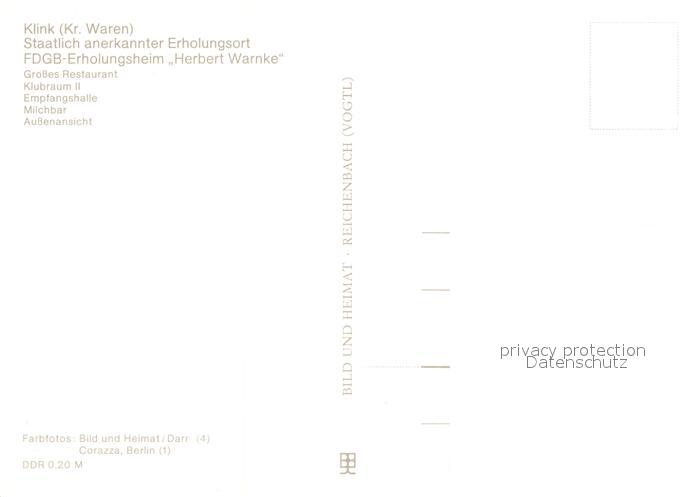 73169238 Klink Waren FDGB Erholungsheim Herbert Warnke postalisch nicht gelaufen Erhaltung siehe scans [KathaD81] KatCode: 11110013056030