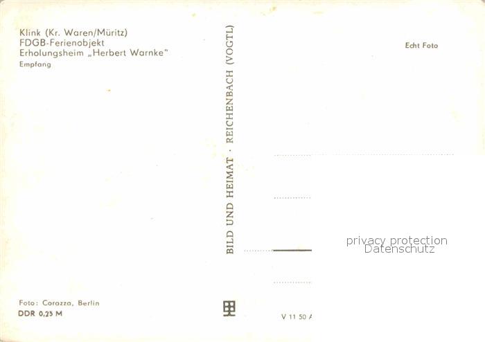 72773271 Klink Waren FDGB Erholungsheim Herbert Warnke Empfang postalisch nicht gelaufen Erhaltung siehe scans [FriedD77] KatCode: 11110013056030
