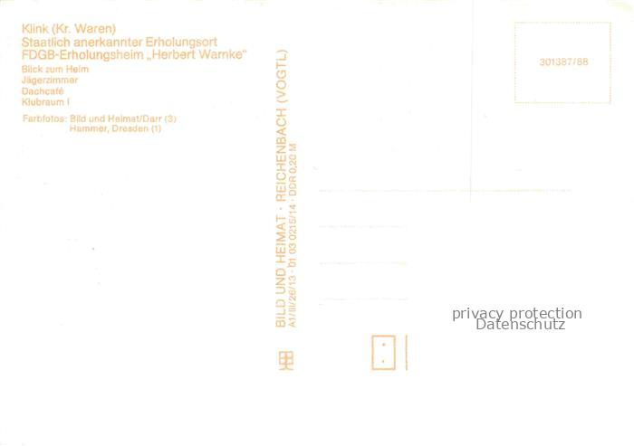 74038922 Klink Waren FDGB-Erholungsheim Herbert Warnke Jaegerzimmer Café Klubraum postalisch nicht gelaufen Erhaltung siehe scans [FriedD77] KatCode: 11110013056030