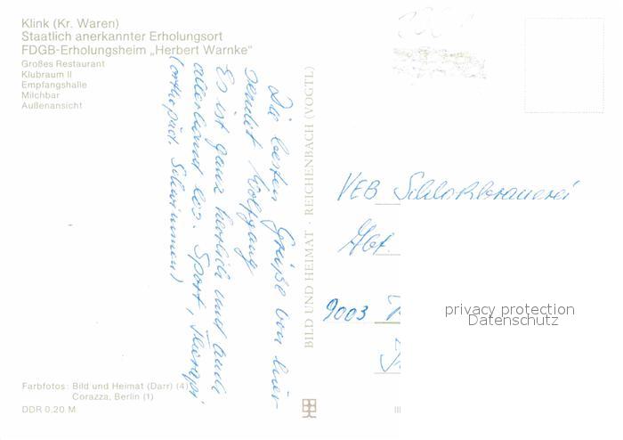 72750673 Klink Waren FDGB Erholungsheim Herbert Warnke Restaurant Klubraum Milchbar postalisch nicht gelaufen Erhaltung siehe scans [KathaD81] KatCode: 11110013056030