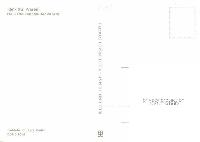 72674078 Klink Waren FDGB Erholungsheim Schloss Klink postalisch nicht gelaufen Erhaltung siehe scans [WerneD78] KatCode: 11110013056030