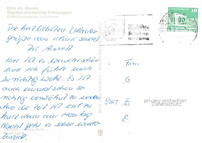 72650879 alte Postkarte Klink Waren FDGB Erholungsheim Schloss Klink postalisch gelaufen Erhaltung siehe scans [FriedD77] KatCode: 11110013056030