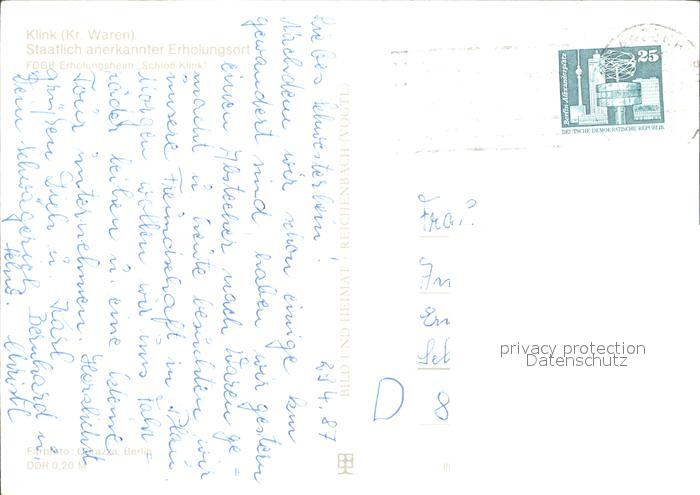 72261746 alte Postkarte Klink Waren FDGB Erholungsheim Schloss Klink postalisch gelaufen Erhaltung siehe scans KatCode: 11110013056030
