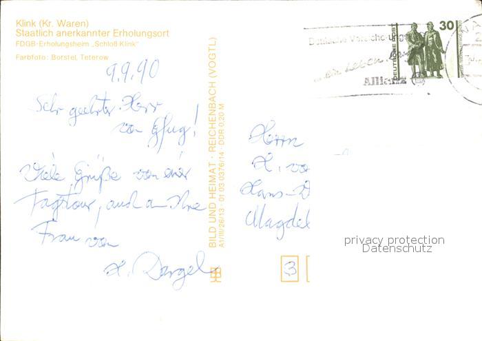 72041238 alte Postkarte Klink Waren FDGB Erholungsheim Schloss Klink postalisch gelaufen Erhaltung siehe scans KatCode: 11110013056030