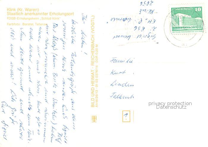 73082438 alte Postkarte Klink Waren FDGB Erholungsheim Schloss Klink postalisch gelaufen Erhaltung siehe scans [KathaD81] KatCode: 11110013056030