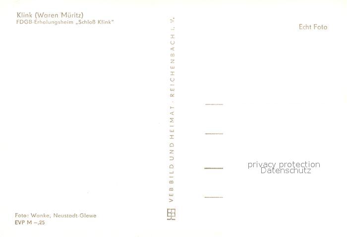 73071709 Klink Waren FDGB Erholungsheim Schloss Klink postalisch nicht gelaufen Erhaltung siehe scans [WerneD78] KatCode: 11110013056030