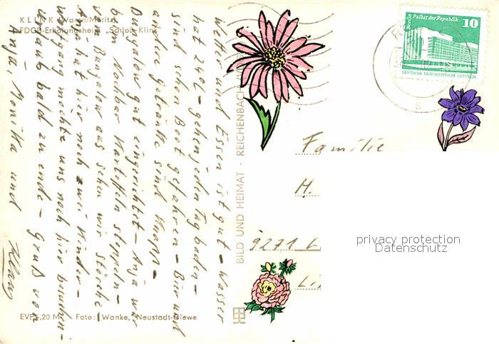 72727937 alte Postkarte Klink Waren FDGB Erholungsheim Schloss Klink an der Mueritz postalisch gelaufen Erhaltung siehe scans [FriedD77] KatCode: 11110013056030