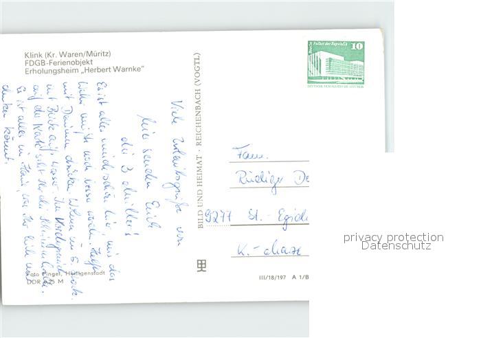 72383865 Klink Waren FDGB- Ferienobjekt Erholungsheim Herbert Warnke postalisch nicht gelaufen Erhaltung siehe scans KatCode: 11110013056030