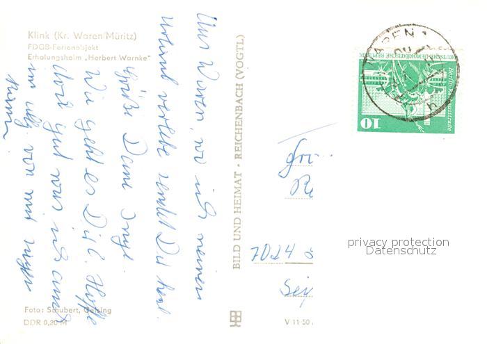 73099953 alte Postkarte Klink Waren FDGB Ferienobjekt Erholungsheim Herbert Warnke postalisch gelaufen Erhaltung siehe scans [KathaD81] KatCode: 11110013056030