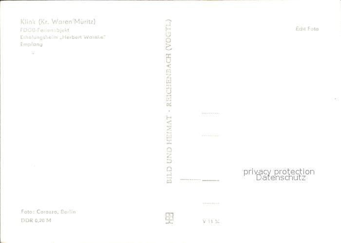 72064834 Klink Waren FDGB Ferienobjekt Erholungsheim Herbert Warnke Empfang postalisch nicht gelaufen Erhaltung siehe scans KatCode: 11110013056030
