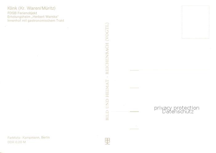 73741324 Klink Waren FDGB Ferienobjekt Erholungsheim Herbert Warnke Innenhof postalisch nicht gelaufen Erhaltung siehe scans [FriedD77] KatCode: 11110013056030