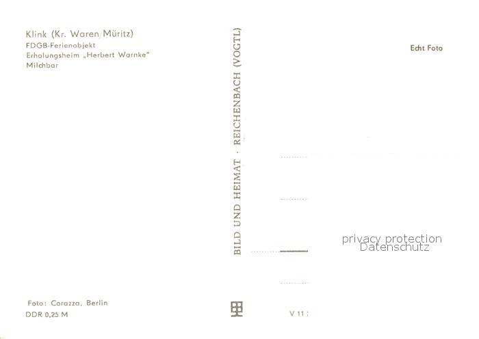 73105688 Klink Waren FDGB Ferienobjekt Erholungsheim Herbert Warnke Milchbar postalisch nicht gelaufen Erhaltung siehe scans [KathaD81] KatCode: 11110013056030