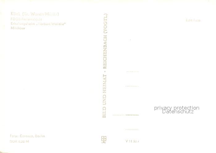 73102574 Klink Waren FDGB Ferienobjekt Erholungsheim Herbert Warnke Milchbar postalisch nicht gelaufen Erhaltung siehe scans [KathaD81] KatCode: 11110013056030