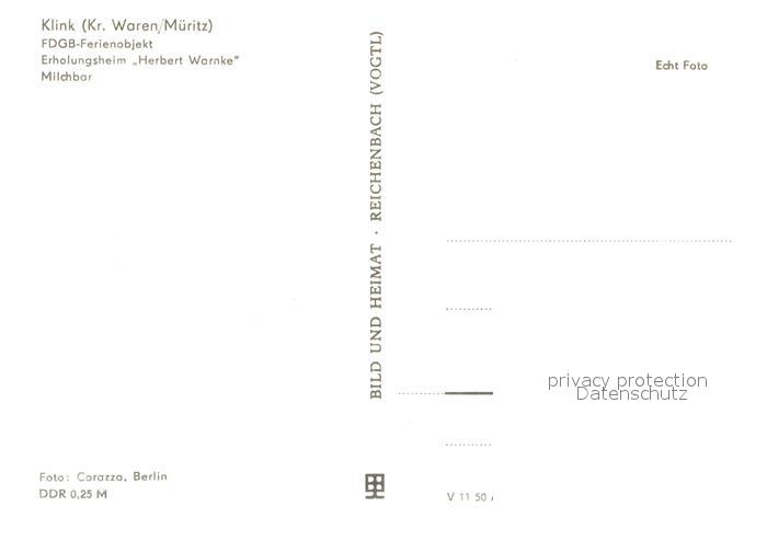 72945811 Klink Waren FDGB Ferienobjekt Erholungsheim Herbert Warnke Milchbar postalisch nicht gelaufen Erhaltung siehe scans [FriedD77] KatCode: 11110013056030