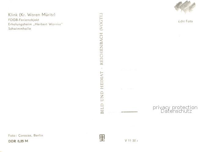 73095985 Klink Waren FDGB Ferienobjekt Erholungsheim Herbert Warnke Schwimmhalle postalisch nicht gelaufen Erhaltung siehe scans [KathaD81] KatCode: 11110013056030