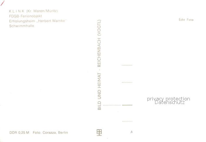 72946665 Klink Waren FDGB Ferienobjekt Erholungsheim Herbert Warnke Schwimmhalle postalisch nicht gelaufen Erhaltung siehe scans [FriedD77] KatCode: 11110013056030