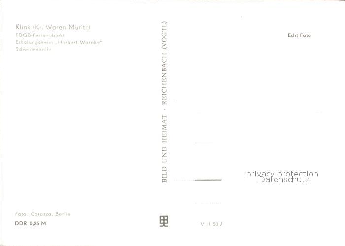 72365933 Klink Waren FDGB Ferienobjekt Erholungsheim Herbert Warnke Schwimmhalle postalisch nicht gelaufen Erhaltung siehe scans KatCode: 11110013056030