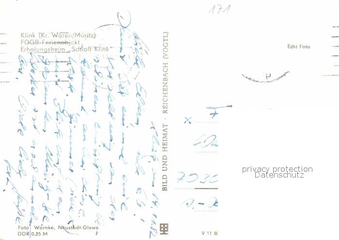 72815401 alte Postkarte Klink Waren FDGB Ferienobjekt Erholungsheim Schloss Klinik postalisch gelaufen Erhaltung siehe scans [FriedD77] KatCode: 11110013056030