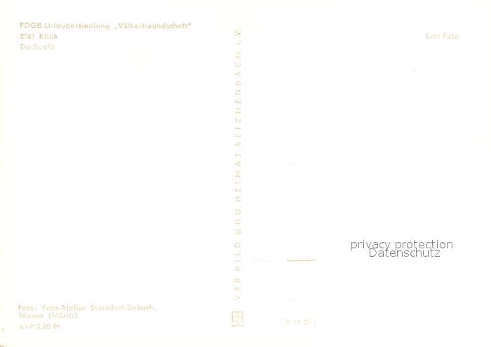 72966649 Klink Waren FDGB Urlaubersiedlung Voelkerfreundschaft Dachcafe postalisch nicht gelaufen Erhaltung siehe scans [FriedD77] KatCode: 11110013056030