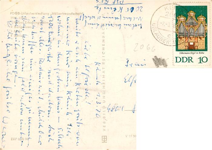 73892841 alte Postkarte Klink Waren FDGB Urlaubersiedlung Voelkerfreundschaft Neues Erholungsheim Bungalows Mole Schloss postalisch gelaufen Erhaltung siehe scans [FriedD77] KatCode: 11110013056030