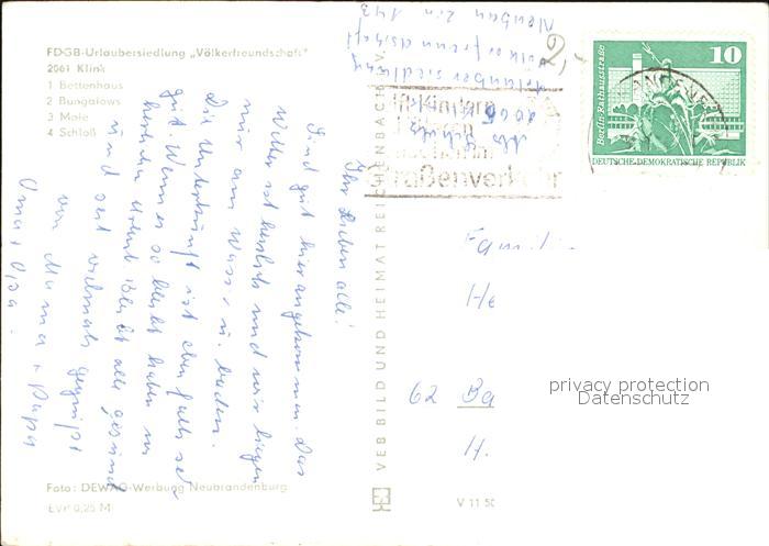 72465528 alte Postkarte Klink Waren FDGB Urlaubersiedlung Voelkerfreundschaft Schloss postalisch gelaufen Erhaltung siehe scans KatCode: 11110013056030