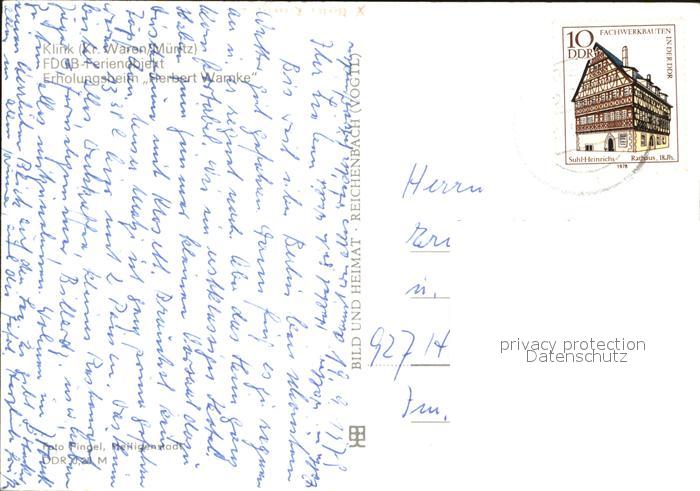 72427264 alte Postkarte Klink Waren Ferienheim Herbert Warnke postalisch gelaufen Erhaltung siehe scans KatCode: 11110013056030