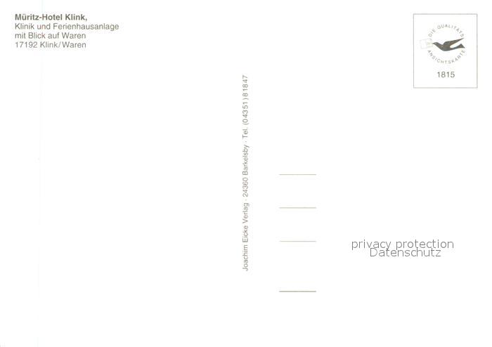 73656243 alte Postkarte Klink Waren Fliegeraufnahme mit Mueritz Hotel und Ferienhausanlage postalisch gelaufen Erhaltung siehe scans [WerneD78] KatCode: 11110013056030