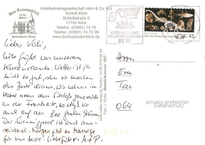 73614751 alte Postkarte Klink Waren Fliegeraufnahme Schloss Klink postalisch gelaufen Erhaltung siehe scans [PaolaD17] KatCode: 11110013056030
