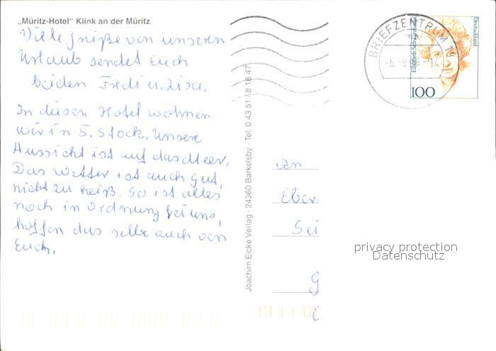 72331393 alte Postkarte Klink Waren Mueritz-Hotel postalisch gelaufen Erhaltung siehe scans KatCode: 11110013056030