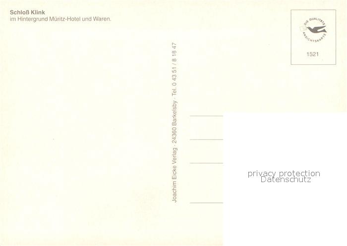 73323054 Klink Waren Schloss im Hintergrund Mueritz Hotel und Waren Mecklenburgische Seenplatte Fliegeraufnahme postalisch nicht gelaufen Erhaltung siehe scans [FriedD77] KatCode: 11110013056030