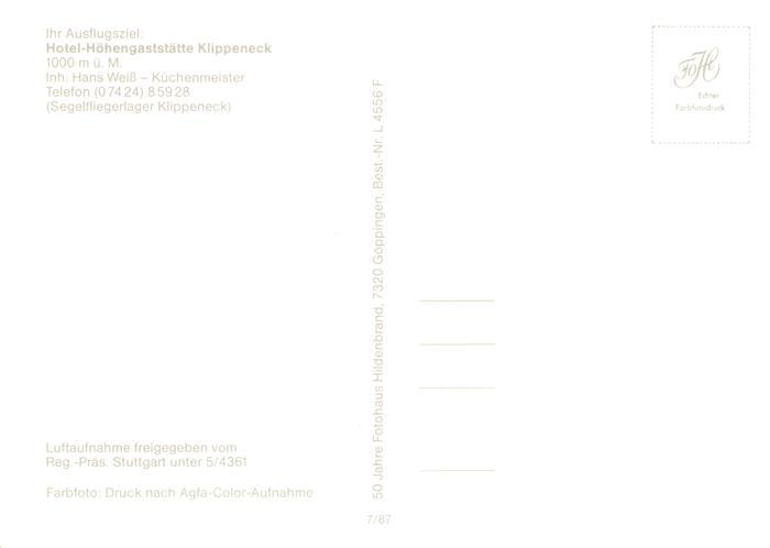 73904211 Klippeneck Spaichingen Hotel Hoehengaststaette Klippeneck Fliegeraufnahme postalisch nicht gelaufen Erhaltung siehe scans [WerneD78] Wern Katcode 11110008327046