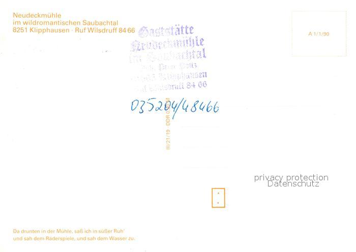 73165211 Klipphausen Neudeckmuehle postalisch nicht gelaufen Erhaltung siehe scans [KathaD81] KatCode: 11110014280170