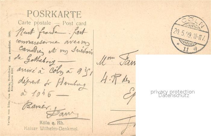 43489275 alte Postkarte K?ln Rhein Kaiser Wilhelm Denkmal postalisch gelaufen Erhaltung siehe scans [LiesaD40] KatCode: