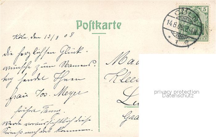 43489266 alte Postkarte K?ln Rhein Sachsenring postalisch gelaufen Erhaltung siehe scans [LiesaD40] KatCode: