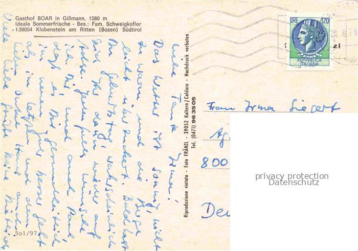 74079719 Klobenstein Ritten Collalbo Renon Suedtirol IT Gasthof Boar Gissmann Panorama postalisch nicht gelaufen Erhaltung siehe scans [WerneD78] KatCode: 11240