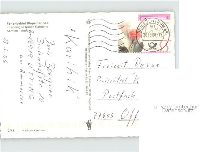 72481629 alte Postkarte Klopeinersee postalisch gelaufen Erhaltung siehe scans KatCode: 11390