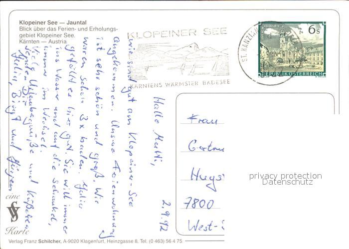 72609603 alte Postkarte Klopeinersee Fliegeraufnahme Jauntal postalisch gelaufen Erhaltung siehe scans [LiesaD40] KatCode: 11390