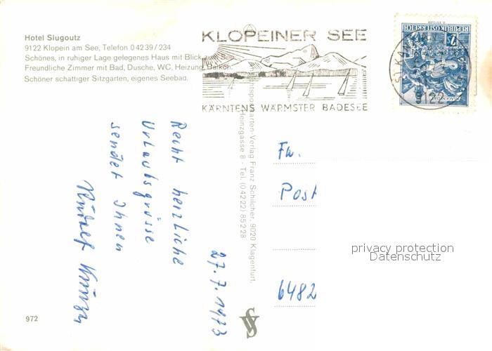 72901488 alte Postkarte Klopeinersee Hotel Slugoutz Panorama postalisch gelaufen Erhaltung siehe scans [FriedD77] KatCode: 11390