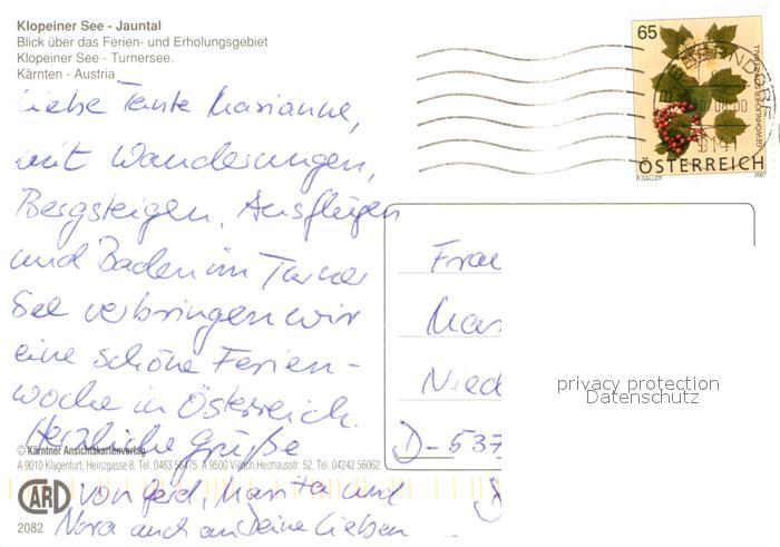 73523038 alte Postkarte Klopeinersee Jauntal Turnersee Fliegeraufnahme postalisch gelaufen Erhaltung siehe scans [WerneD78] KatCode: 11390