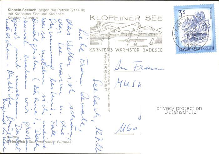 71831844 alte Postkarte Klopeinersee Kleinsee Petzen postalisch gelaufen Erhaltung siehe scans KatCode: 11390