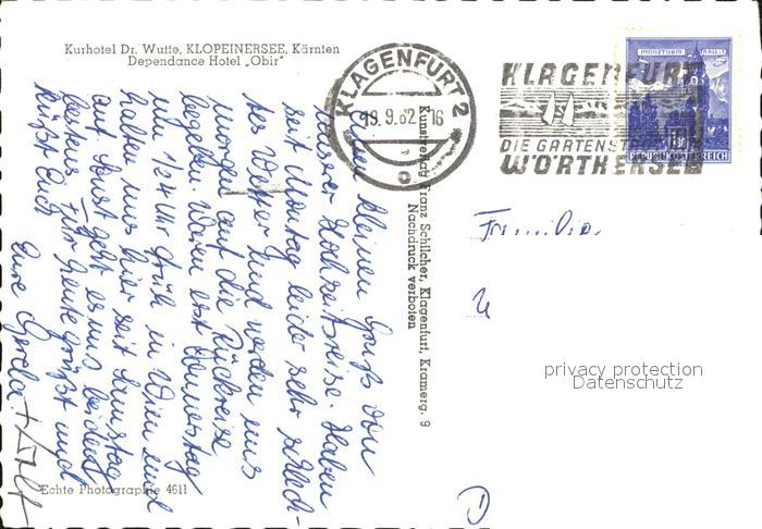 72485006 alte Postkarte Klopeinersee Kurhotel Doktor Wutte postalisch gelaufen Erhaltung siehe scans KatCode: 11390