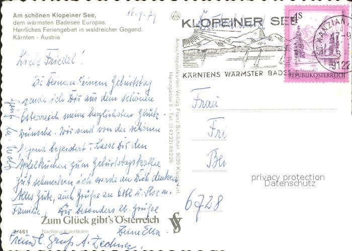 72376587 alte Postkarte Klopeinersee Panorama Badesee Badesteg postalisch gelaufen Erhaltung siehe scans KatCode: 11390