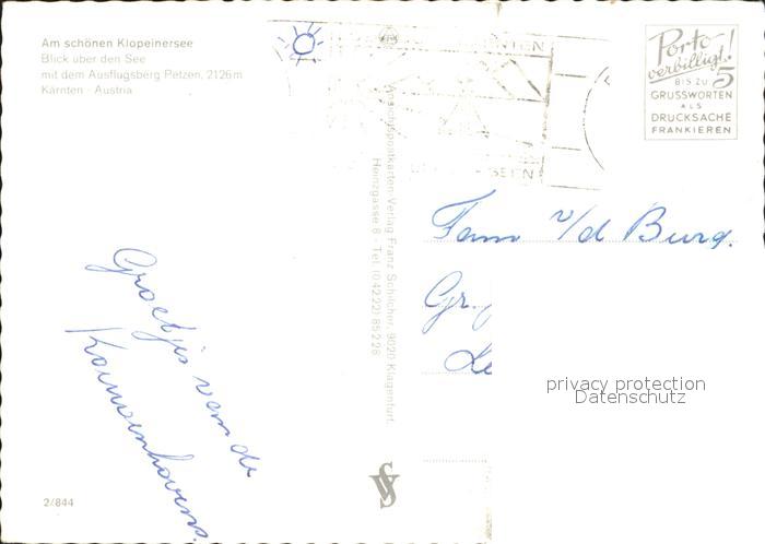 72270761 alte Postkarte Klopeinersee Panorama mit Ausflugsberg Petzen Fliegeraufnahme postalisch gelaufen Erhaltung siehe scans KatCode: 11390