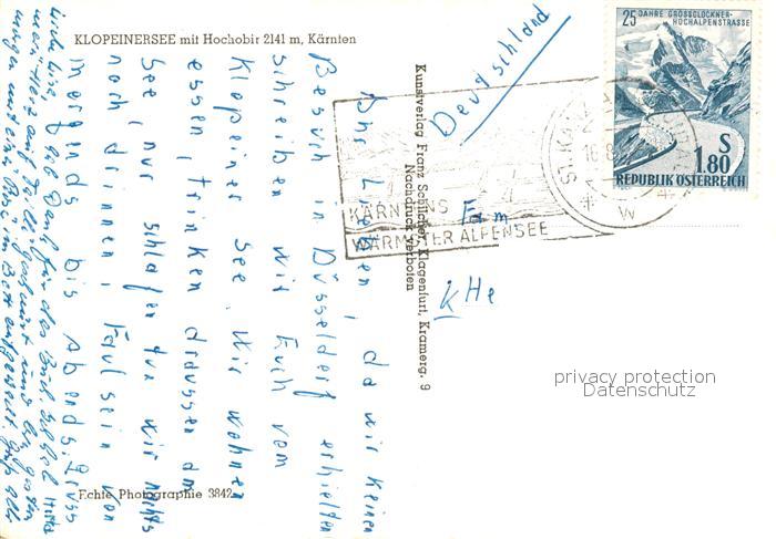 73043134 alte Postkarte Klopeinersee Uferpartie am See mit Hochobir Karawanken postalisch gelaufen Erhaltung siehe scans [FriedD77] KatCode: 11390