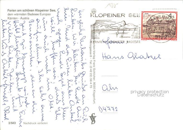 72448028 alte Postkarte Klopeinersee waermster Badesee Europas Restaurant Terrasse Alpenblick postalisch gelaufen Erhaltung siehe scans KatCode: 11390